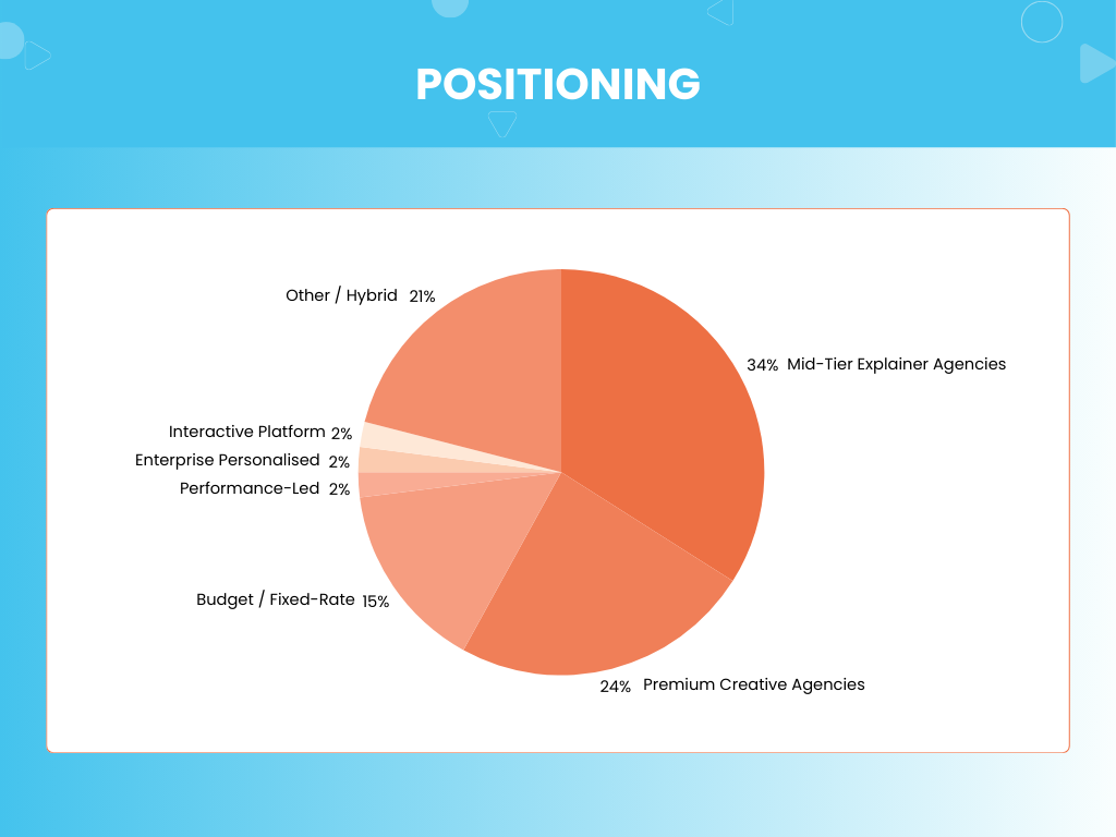 The majority of the market sits squarely in the £2K-£8K range, representing mid-tier agencies delivering structured explainer videos with varying levels of creative and strategic involvement.