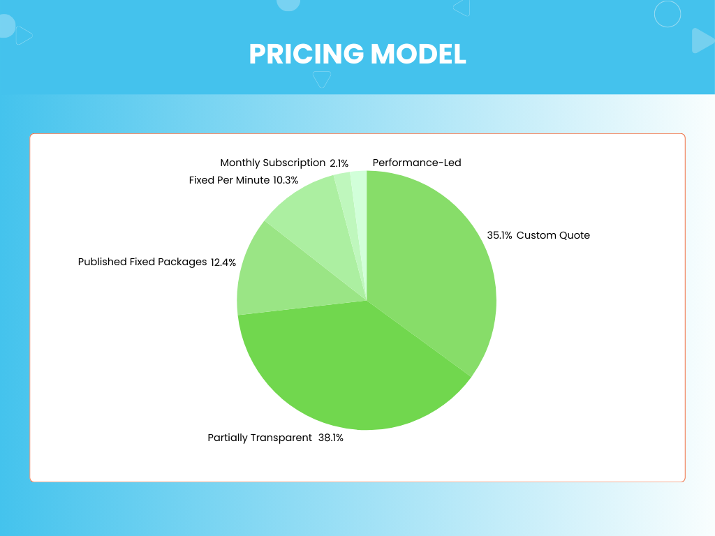 The overwhelming majority still operate on custom quote models, meaning buyers must submit a brief before receiving a price.